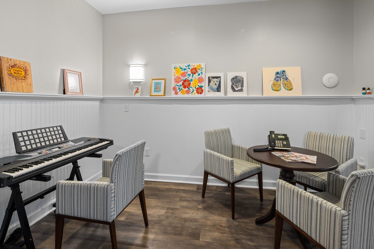 Spend time on the covered patio, take a quiet loop through the courtyard and community garden, or enjoy an easy afternoon in the library. Designed for comfort and connection, this community brings a steady rhythm to daily life for families seeking senior living in North Carolina.